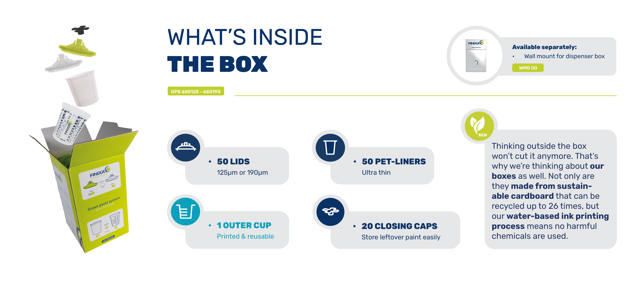 Our new Finixa Paint system is certainly innovative in that respect. The renewed system uses an ultra-thin PET-liner. Using Polyethylene terephthalate (PET) puts us a green step ahead as a company. This is enhanced by the fact that we use an incredible 40-50% less plastic to produce our new flexible inner cups. That is, compared to the average liner by our competitors on the market. Looking at a European market of a tremendous 150 million produced systems, this is a significant amount of plastic that we can prevent from being used.